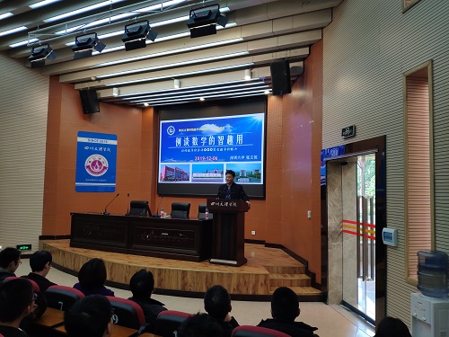 张文俊教授首先以一个和同学老师们的数学魔术互动将大家带入本次讲座之中,激起了同学们对本次讲座的期待。随后,张教授提出“数学是科学”的核心观点,进而从数学的智慧、趣味、应用三个方面,阐述“数学类似于游戏,高于游戏”“数学是有用的科学”等多达12种观点,列举并讲解了16个案例,带领大家深入数学的海洋,感受数学的智趣用。最后,张文俊教授以“数学是重要、智慧、有趣的科学”的话题作为本次活动的结束语,让大家感受到数学对个人和社会的重要性。