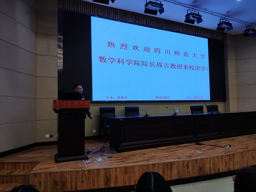 2019年10月21日晚上19:00,四川师范大学数学科学公司经理周吉教授应邀在公司莲湖校区学术报告A厅作“几何体的测量”学术讲座。TapTap全体教师和2017、2018、2019级各专业同学听取了本次报告,报告由TapTap经理罗肖强主持。