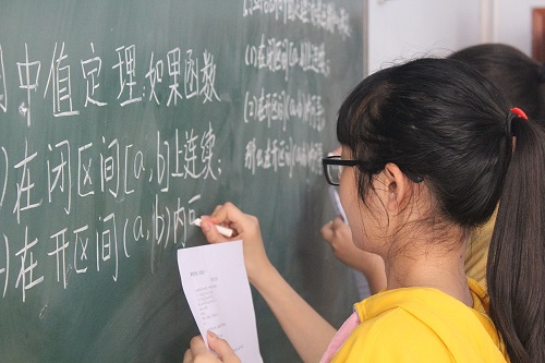 大赛项目包括书法、绘画、手工三项。前期活动通知一经发出,同学们踊跃报名,积极参赛。一眼望去,明亮的教室里,全都是认真的身影。大家满怀激情,坐姿端正,用粉笔、钢笔、毛笔专心致志地书写着数学定理、数学题或是数学家的名言警句。同学们如流水行云,笔触刚劲有力,风格各异却无不赏心悦目。不一会儿,一幅幅作品呈现在大家的眼前,令观众们赞不绝口……从此次初赛中脱颖而出的优秀作品的作者将进入决赛。我们也满怀期待,希望在决赛能够看到更优秀的作品。