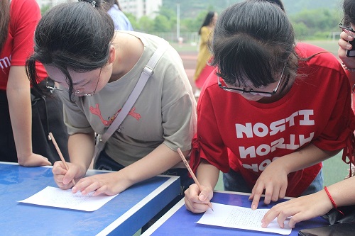 本次游园活动包括手脚沾地、接力乒乓球、数独、团队跳绳、唱歌、你比我猜六个项目。活动采用积分制,六人一队,每队队员需共同完成这六个项目,各队可同时进行比赛,累积分数越高的队伍获得的奖品越丰富。比赛还未开始,同学们就已经迫不及待、跃跃欲试了。其中最受欢迎的项目非“你比我猜”莫属了,这项活动考验的是队友的默契程度以及理解能力,比划的同学通过语言和肢体动作生动形象地描述题目,猜题的同学需聚精会神,迅速反应,配合双方的默契,才有可能猜对答案。每有同学猜对了正确答案,围观的同学就爆发出热烈的欢呼声和掌声,整个活动过程中同学们的欢呼声与鼓掌声不绝于耳,弥漫着整个运动场!其他项目也纷纷得到了同学们的青睐,精彩万分,无不充分地考验队友间的团结合作能力和分工协作能力。活动如火如荼地开展着,同学们也充分享受了活动本身带来的无尽乐趣。
