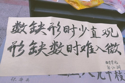 经过初赛的激烈角逐,40余名同学成功晋级总决赛。在负责人详细讲解注意事项之后,比赛正式开始。钢笔、粉笔与毛笔三大内容,考验的是大家的排版技巧以及书写能力。同学们正襟危坐、心无旁骛、满怀激情地书写着数学题、数学定理或是数学家的名言。大家书写工整、字迹清楚,落笔苍劲有力、飘若浮云、矫若惊龙……最终,经过公司领导以及专业人员的评审之后,郭江湖同学荣获本次比赛钢笔组与粉笔组第一名,张亚宁同学获得毛笔组第一名,而吴芸与苏彤昕同学分别获得手工组与绘画组第一名……活动后期,公司将会展览本次比赛中的优秀作品,欢迎同学们赏评。