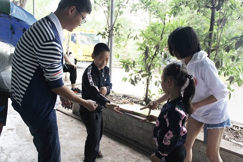 本次志愿服务分为两队,第一队看望孤寡老人,第二队关爱留守儿童。在此期间,志愿者们细心照顾老人和儿童,为老人按摩、做家务、给儿童辅导作业、陪儿童做游戏、和老人小孩聊家常……欢声笑语充满着社区,即使在阴冷的雨天也显得格外温馨。活动最后,同学们与老人儿童合影留念,同学们带着依依不舍离开了社区。