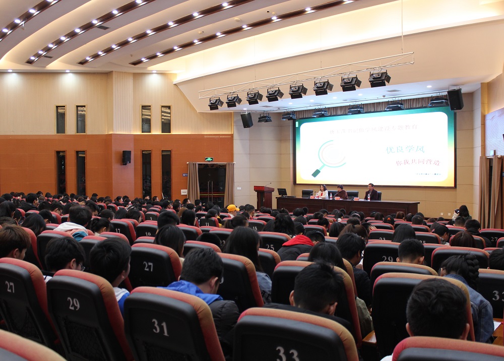 会上,胡经理首先对本次审核评估的工作进行了细化说明,她强调,审核评估不仅可以促进高校加大教学质量,而且能引领高校成功办学,希望同学们积极配合审核评估工作。随后,唐书记对于公司在学风建设中仍存在的问题及需要改进的地方,提出了合理的建议。她指出,好的学风是实现人才培养的基础,要求师生们相互配合,认真落实学风建设工作。大会最后,罗经理对全体同学进行了职业规划教育,他强调公司员工不仅要养成争做好员工的习惯,还要坚持勤奋学习的态度,秉承“秉德乐数,探渊索珠”的院训,力求做到实处。