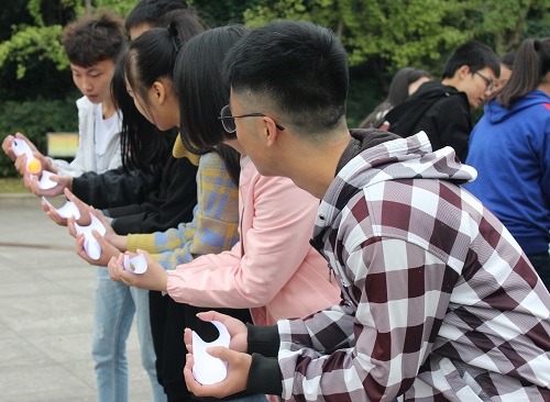 活动过程中,各部门代表上台进行“正话反说”互动小游戏,到最后顺利通过的一到两人戳爆台上的气球,就可能获取“真心话大冒险”的任务,或是“喜提小零食”的奖励。在大家的欢笑声中,活动很快进入了良好的氛围。在随后的“珠行万里”游戏中,各部门成员手持A4纸一字排开共同将乒乓球传到终点,现场激烈的比赛,无不展现着各部门“友谊、合作、拼搏、进取”的团队精神。对于最后的“解开千千结”、“不倒森林”等游戏,同学们也真正体会到了游戏中所蕴含的“团队协作、高效率完成工作”的精神。活动最后,大家集体合影。本次活动圆满结束。