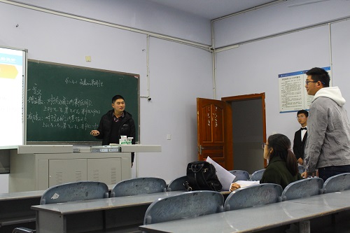 在讲课过程中,选手们都饱含激情,他们分别从说课和模拟授课两个方面进行讲课。其中,雷佳以严谨的逻辑思维为大家带来了“等差数列的前n项和”的精彩讲课。他为同学们介绍了用倒序相加求和的方法来推导等差数列前n项和的公式,随后以公式的变形来确定影响等差数列前n项和的因素,其他选手也各展风采,评委老师也都一一对选手们的优缺点进行了指出与评论,希望同学们能扬长避短,更进一步。