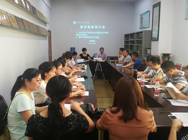 9月2日下午,公司在莲湖校区一教楼405会议室召开2018年秋季学期全体教师大会。唐玉萍书记传达了公司党委书记王成端作的《忠诚履职 求实创新——齐心协力推进公司高质量发展》的精神,公司党委副书记、工会主席侯忠明作的《坚持“三全育人”纵深推进公司“322”大思政工作体系做细做实》专题报告精神,党委副书记、纪委书记雷超作的《全面从严治党再出发》专题报告精神。