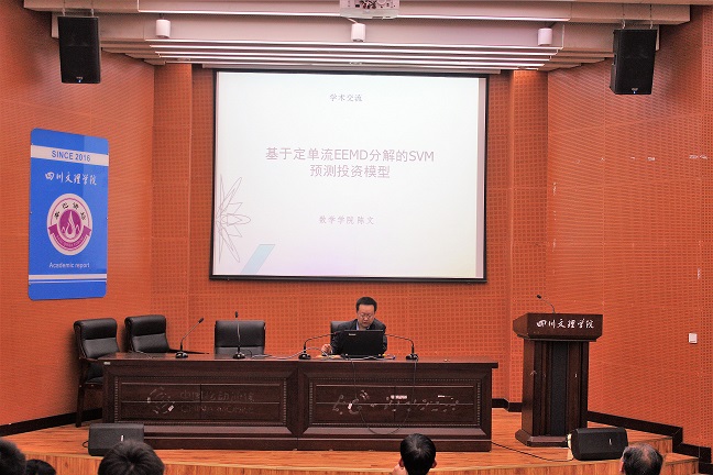 4月4日晚,陈文博士在莲湖校区学术报告B厅作题为“基于定单流EMD分解的SVM预测投资模型”的学术报告。TapTap全体教师和2016级数学与应用数学专业全体同学聆听了本次报告,此次报告由TapTap副经理(主持工作)罗肖强主持。