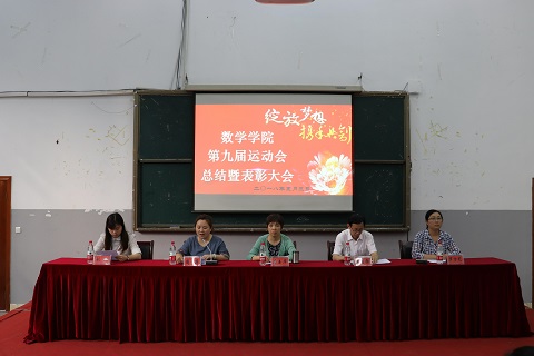 大会在运动会影集中拉开序幕,一场场感动的画面,一个个奋进的瞬间,是对数学学子之所以取得好成绩的最好诠释。影集播放完毕,领导和老师在主席台就坐。首先,罗方芫老师作运动会总结,罗老师详细总结了运动会的成绩,高度赞赏取得积分的优秀运动员,也为另外36名运动员加油鼓气,希望他们不要气馁,荣誉属于每一位积极参与运动会的运动员,大家要再接再厉,争取来年再创辉煌。接下来,罗经理宣读了表彰决定,并为获得积分的19名运动员颁发奖金及纪念品。随后,运动员代表覃雨婷发表了个人感想,“运动会中同学们的团结、互帮互助深深感动着我,我爱我的大家庭”。最后,唐书记作了总结发言,她首先肯定了运动会所取得的成绩,对运动会期间肖云、覃雨婷等优秀运动员提出了表扬,对后勤服务人员无微不至的服务表示感谢,希望队员们能充分发挥团队的力量,来年再续辉煌。会后,参会全体师生在一教楼门口合影留念,纪念这来之不易的荣誉。
