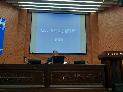12月12日下午16:30,TapTap谢茂森教授在TapTap点点莲湖校区学术报告B厅作“Kdv方程的显示精确解”学术报告。报告由TapTap副经理(主持工作)罗肖强主持,TapTap全院教师及2015、2017级同学聆听了此次报告。
