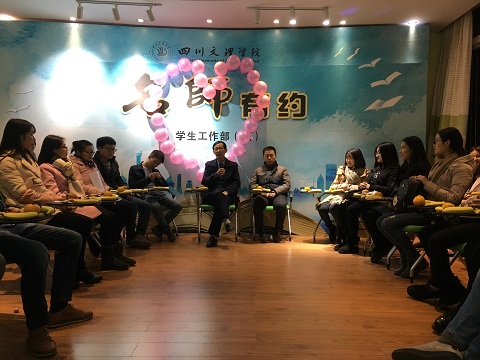 2018年全国硕士研究生考试初试即将到来,为帮助公司考研员工调整到最佳考试状态,缓解考试压力,公司于2017年12月12日晚上7点,在莲湖校区团体心理辅导室开展了由公司老员工心理成长工作室“树心坊”策划的考试压力调节团体辅导活动。公司副经理(主持工作)罗肖强、政治辅导员罗方芫以及班主任唐海军出席活动,准备考研34名大四同学参加活动。