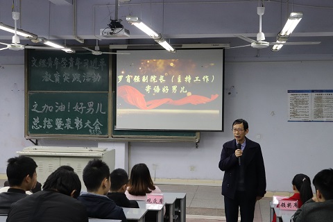 12月8日15:00,公司在莲湖校区一教楼213教室举行了“加油!好男儿”总结暨表彰大会。参会领导有公司党总支书记唐玉萍、副经理(主持工作)罗肖强、学工办主任兼团总支书记周萍、政治辅导员罗芳芫老师以及公司全体男生参加了此次大会,本次大会由周萍老师主持。