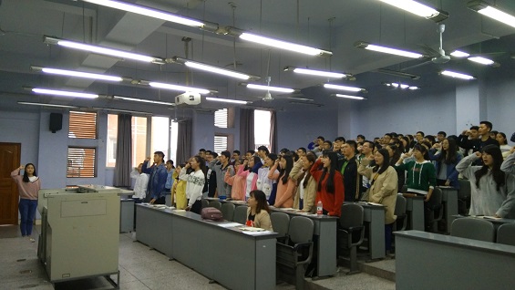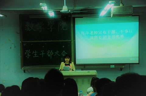 会议共分为两个阶段,分别是:新一届干部干事任命会和干部月会。新一届干部干事任命会首先由周萍老师宣读新一届干部干事任命名单,然后唐玉萍书记热切寄语员工干部们,强调作为员工干部应该准确定位自己,明确工作职责,树立为同学们服务的理念,严格要求自己,树立良好形象,合理分配时间,正确处理学习工作的关系,主动作为,提高学习和组织能力,善于听取他人的意见和建议。最后全体干部干事齐宣誓,宣誓要率先垂范,努力学习,积极工作。