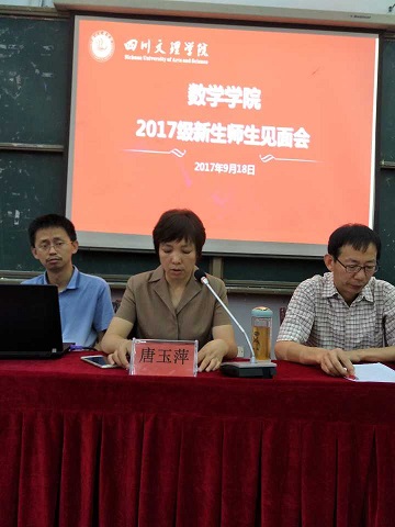 为增进师生交流,帮助新生尽快适应环境,公司于2017年9月18日上午10:30,在莲湖校区一教楼113室召开了2017级师生见面会。出席本次会议并在主席台就坐的领导和老师有:公司党总支书记、省级优秀教师唐玉萍副教授、院副经理罗肖强(主持工作)副教授、院办公室主任苟格副教授、院数学教研室主任胡蓉副教授、院学工办主任兼团总支书记周萍、院教学秘书高晶。2017级班主任和全体员工参会。会议由周萍主持。