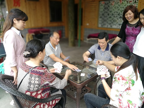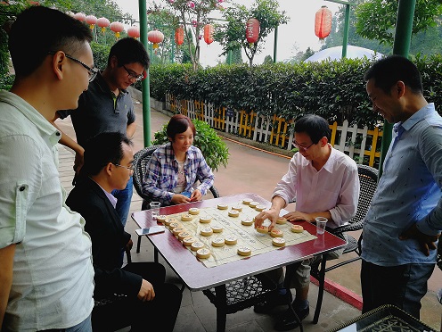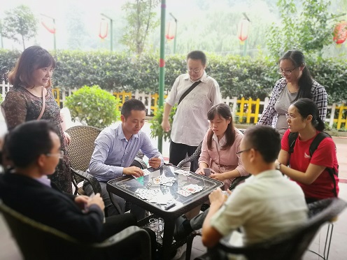 下午2:30,老师们从莲湖校区一教学楼正门出发,从金龙大道进入莲花湖广场,徒步环游莲花湖湿地公园。经过一个半小时的竞走,最终到达莲花湖自然源山庄。随后开展了棋牌比赛。