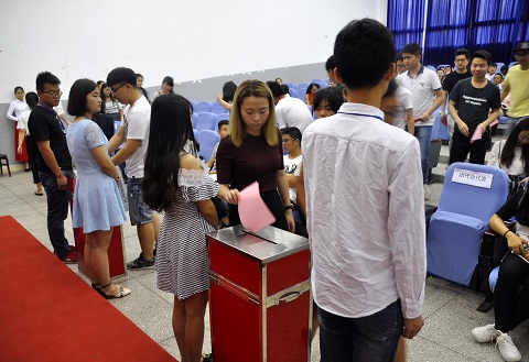 2017年6月3日上午9点整,共青团TapTap第一次代表大会暨第一次员工代表大会在莲湖校区一教楼113教室隆重召开。公司党总支书记唐玉萍,团总支书记兼学工办主任周萍老师,辅导员罗方芫老师,团总支副书记王瑶,员工会主席郝丽姝,员工会副主席周山兰出席会议,来自全院各级团学代表100余人参会。会议由大会副主任周山兰主持。