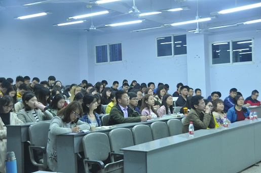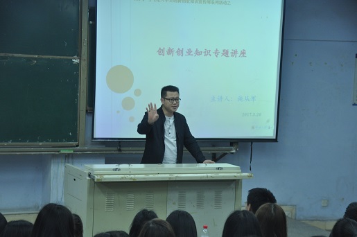 曾多次荣获创新创业大赛大奖的施从军老师,用与众不同的方式,幽默风趣的给我们讲了他创业的故事,过程充满艰辛,但现在是硕果累累,幸福感爆棚。故事从施老师上大学第一天开始,一进公司,首先得确立自己的目标,大学毕业了之后我们能干嘛?是否能够拥有属于自己的一片天空?读着师范专业的他却满心想着创业,于是他告诉自己,要实现这个目标,必须有强大的演讲技能,有较好的师范技能,“心有多大,舞台就有多大”,施老师用行动诠释了成功的意义。施老师告诉我们,既然有创业的想法,就要有敢于面对失败的勇气,并且有战胜一切的决心,在创业的路上,勇于创新,让莘莘学子的求学之路更加畅通无阻,更加一帆风顺。