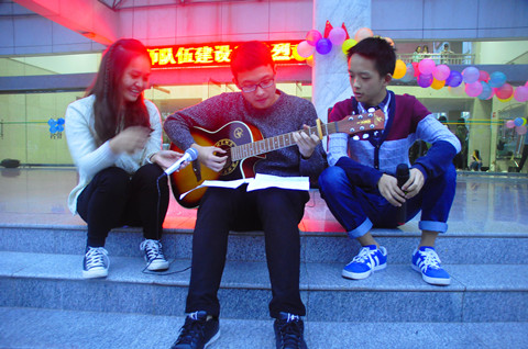首先,主持人将所有成员按部门分为10组。活动开始,全体团总支员工会成员一起唱团歌,歌声嘹亮,响遏行云,如江潮海浪,激起千堆雪。接下来进入好玩刺激的游戏环节。第一个游戏“人体多米诺”,各种诙谐、幽默的动作不时吸引了阵阵笑声。接下来是最吸引眼球的“一块五毛”游戏,看点就在后面几名队员,由于要求必须有男生也有女生,他们很难在短时间内凑够。似乎每个人都想着他们“失误”。最终虽然没有“如愿以偿”,但大家的欢声笑语是从未间断的。