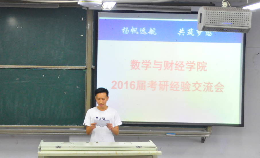 为了给有意向考研学子们提供更多的考研经验,公司于2016年5月12日晚7点在莲湖校区新教学楼428教室举办了数学与财经公司2016届考研经验交流会。本次交流会公司党总支副书记于贵副教授,郑宗剑老师,以及今年以优异的成绩考研成功的十七位同学来到现场。