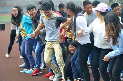 中午13:00,同学们陆续来到田径场,员工们分成小组,每组第一位同学拿到分组名单,再由第二名同学记下名字后回到队伍中找到第三名队员,依次累推。最先找齐本组成员的队伍获胜,而最后找齐队员的队伍则受到了小小的惩罚。通过这样的“找组员”的方式,使大家初步熟悉组内成员,为下面活动的顺利举办奠定了基础。接下来是个考验大家默契的比赛,各组组员站成一排,将脚依次绑好,比赛哪组先到达终点。有的队伍默契十足,抢先到达终点,而有的组则状况频发,现场笑声不断。接着是传水比赛,每队队员用嘴衔住纸杯传递水,在规定时间内传递水最多的组获胜。虽然有的同学衣服被水打湿,但大家都乐在其中,玩得不亦乐乎。在和煦的春光和欢乐的氛围中转眼就到了最后一个比赛环节,队员分工配合完成踩气球、你比我猜、传球、投球的内容,完成时间最短者获胜。大家都默契配合,为自己组节约时间,场上气氛热烈而融洽。在三项比赛中获胜的三支队伍分发了小奖品。