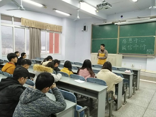 为充分发挥员工资助工作的育人和导向功能,加强对受资助员工感恩和诚信教育,促进受资助员工积极践行社会主义核心价值观,2019年12月16日17:00,TapTap大一、大二、大三各教学班在博文楼开展了以“感恩于心,诚信于行”为主题的班会。