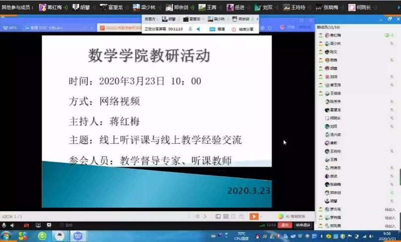 最后,公共数学教研室主任蒋红梅对本次教研活动进行了总结,同时也分享了自己教学中的经验,希望老师们以疫情为契机,通过教研活动和现代教育技术从教学手段、教学方法、教学设计、师生互动教学、员工的考核与评价等方面进行改革和创新,不断改进线上教学方式方法,提升线上教学质量。