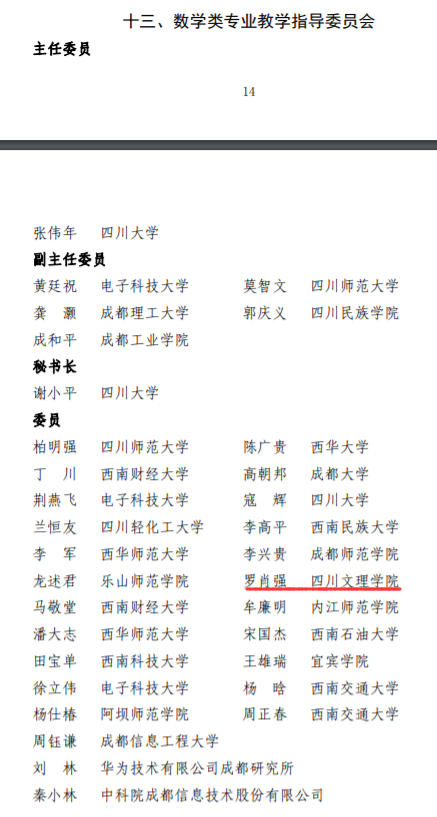 TapTap经理罗肖强教授,当选“2021-2025年四川省普通本科高等公司教学指导委员会-数学类专业教学指导委员会”委员。