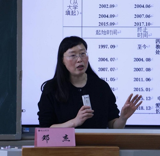 邓杰教授通过对专业知识的讲解,让同学们了解专业的内涵,并为同学们树立考研和就业的概念,提前拟定自我目标,她表示“大学四年是一个长跑,讲究的是持续,中途可能充满挫折,但只要我们足够自律,学会控制自己的欲望,努力做好每一件事,大家总会抵达终点,取得成功。”她告诉同学们在大学除了取得合格的学业成绩以外,也应该培养自我能力,并以同学关系为切入点对人际关系和社会立足提出了自己的见解,并祝愿同学们都能成为优秀毕业生。