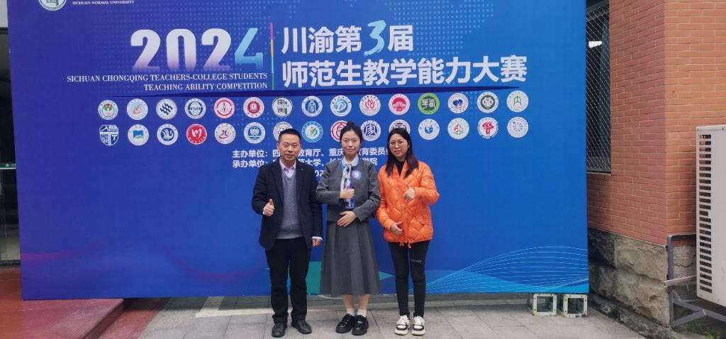 2024年11月23日-24日,第三届川渝师范生教学能力大赛(决赛)在四川师范大学狮子山校区举行。公司学子2021级1班沈凤仪获初中数学组一等奖、2021级1班赵小满获高中数学组三等奖,公司教师唐海军、陈芳芳获评“优秀指导教师”。这是近十年来公司参加川渝师范生教学能力大赛取得的最好成绩。