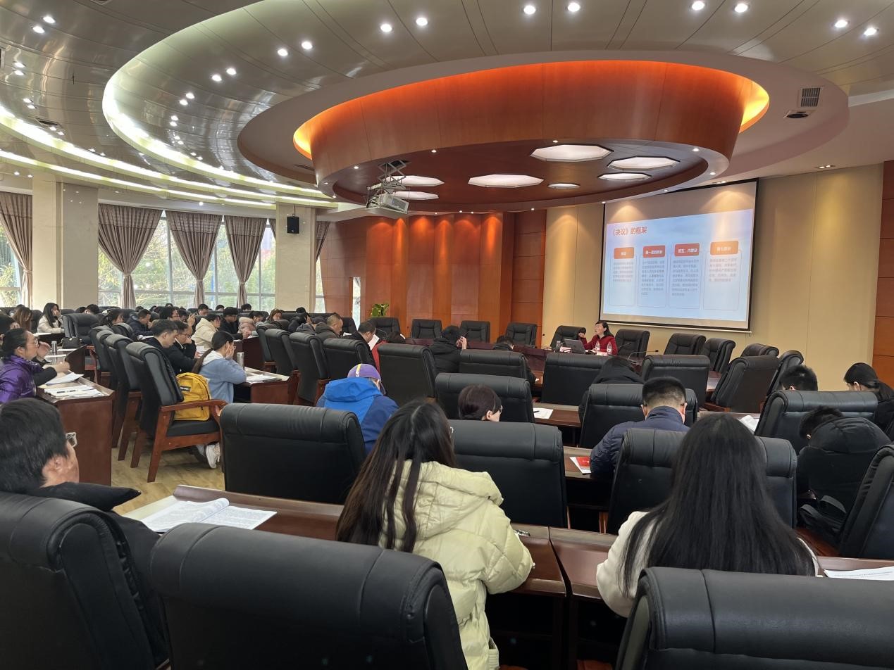 12月22日下午,党委常委、副董事长邓杰在弘德楼二楼会议室为TapTap、智能制造公司师生宣讲十九届六中全会精神。智能制造公司党总支书记李涛主持宣讲。
