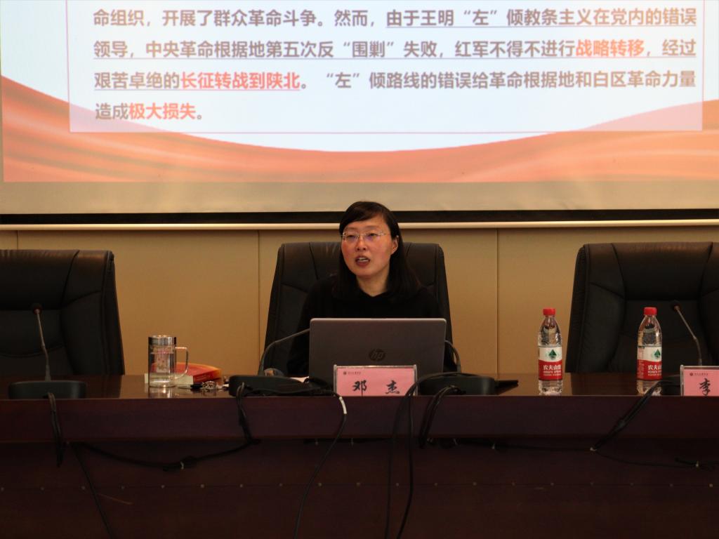 邓杰回顾了十九届六中全会的召开背景、召开情况、会议议程,重点围绕《中共中央关于党的百年奋斗重大成就和历史经验的决议》,沿中国共产党百年奋斗时间线,从历史学角度,深刻的详细的专业的讲述了中国共产党夺取新民主主义革命胜利、完成社会主义革命和推进社会主义建设、进行改革开放和社会主义现代化建设的光辉历程,总结了改革开放以来党和国家事业取得的“十三大成就”及中国共产党百年奋斗的“五大历史意义”“十大历史经验”。