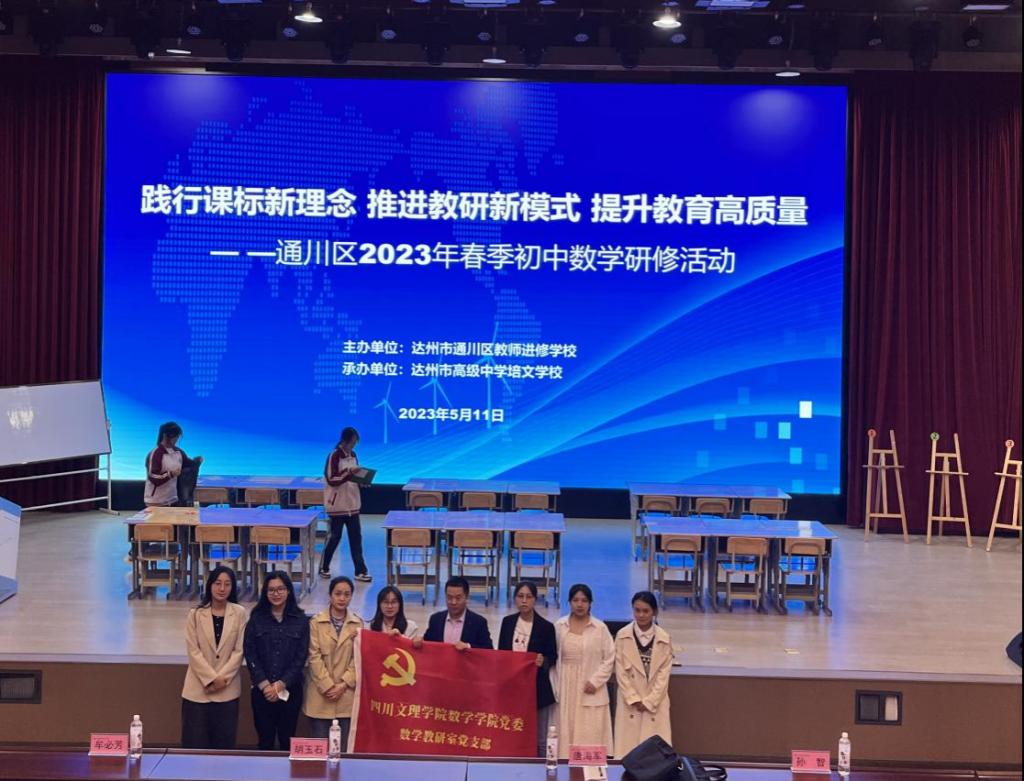 5月11日,公司数学教研室党支部数学教育研究团队唐海军、王佳佳、陈芳芳、刘双、王佳欣五位老师及六位数学与应用数学专业员工受邀赴达高中培文公司参加通川区2023年春季初中数学研修活动。