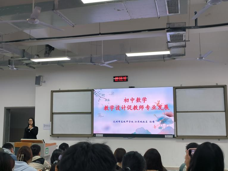 达州市高级中学江湾城校区孙倩老师分享了《初中数学教学设计促教师专业发展》专题讲座。孙倩老师强调作为一个老师不仅要写好教学设计,更要注重自身各方面素质和能力提升。特别是刚入职的新老师如果要在三年之内迅速成长成,不仅要多看课、多听课、多评课,还要积极参与赛课和教学研讨。最后,孙倩老师还分享了教师职业的三重境界:立足教材,传授知识;立足教学,发展思维;立足育人,点燃生命。这也是我们想成为什么样的老师的一种标准。