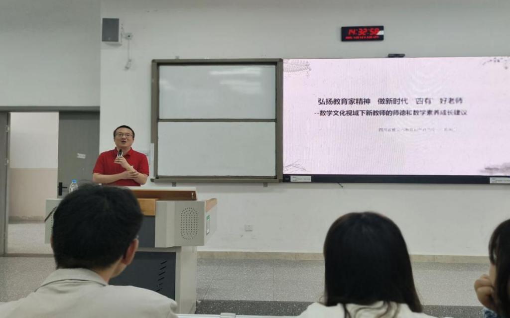 与此同时,公司也邀请了许多一线的专家进行讲座交流。达州市第一中学冉丽娜对四川省初中数学中考命题进行了深入剖析,并分享了新课程改革背景下数学教学思考。达州市通川区教师进修公司马强老师对北师大版初中数学新教材进行了解读。雅安市教育科学研究院的数学教研员韩明炬老师对“弘扬教育家精神,做新时代四有好老师”进行了精彩的解说。四川省牟必轩初中数学名师工作领衔人、宣汉县普光公司牟必轩老师围绕“三新”(新高考、新课标、新教材)背景下的新课程改革进行讲座,为同学们打开了教育改革前沿视野,引发热烈讨论与深刻思考。