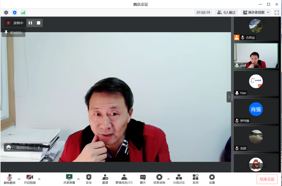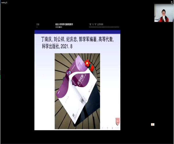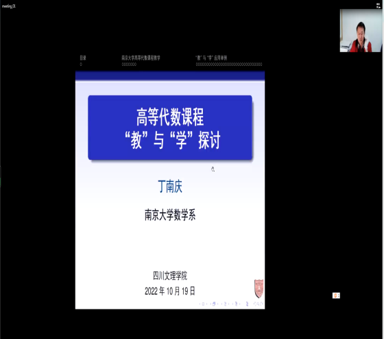 首先,罗经理介绍了丁南庆教授,并对他云端相约表示热烈的欢迎。随后,丁经理针对高校年轻教师如何平衡教学与科学研究之间的关系和高级别项目的申报两个方面展开讲授。丁经理详细讲到作为高校的年轻教师首先要站稳讲台、搞好教学,然后做到教学与科研并重。他给大家分享了自己在南京大学从教近四十年的经验与感悟,告诉大家,教学是立德树人的根本任务,是牢牢端好自己饭碗的最基本功夫;科研是提升自己培养人才的重要抓手,年轻教师现在做科学研究是为将来更好培养出色人才做准备,听到这样的深刻道理,让老师们醍醐灌顶,倍感清新。丁经理对怎样申报高级别的项目,做了很好指导。从项目选题、中英文摘要的写作、研究基础、写作动机和要解决什么问题等方面作了详细的阐释,并要求老师们根据时间节点撰写好项目申报书初稿。接着,丁经理结合南京大学《高等代数》课程教学改革情况,谈到高校教师在教学中如何做到员工所学大于老师所教的效果。最后,丁经理就目前数学课程在少课时情况下,如何做好课程教学、课程建设和专业建设与公司老师们分享了他的经验。