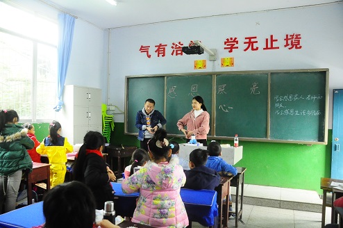 活动过程中,负责各个年级的志愿者采取了不同的感恩活动形式。其中一年级的活动方式为画画,志愿者们让孩子将自己心中想要表达的感恩之情用图画的形式展现出来,内容可以是一个感动的画面,一个精彩的小故事,或者心里想到的画面等,就是希望通过这样的方式让孩子们学会感恩父母、老师和朋友。而二年级则是唱歌、三年级学了手操语、四年级学习折纸,将自己的心意折在纸星星里,带给每一个自己想感恩的人。五年级写感谢信,将自己想要表达感恩的话,以文艺书信的方式写下来,亲自交给父母和老师,表达自己的感恩之情。六年级则是体育运动,通过做一些集体运动,让孩子们体会到团队的力量,感谢团队中每个成员的付出与努力,感恩朝夕相处、陪伴着我们的朋友。