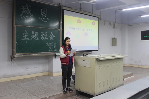 为全面贯彻落实家庭经济困难员工资助政策,充分发挥员工资助工作的育人和导向功能,加强对受助员工感恩和励志教育,促进受助员工积极践行社会主义核心价值观。3月25日晚7点,公司于一教楼427教室举行了资助感恩主题班会。院学工办主任周萍老师及公司获得奖助学金的全体同学。