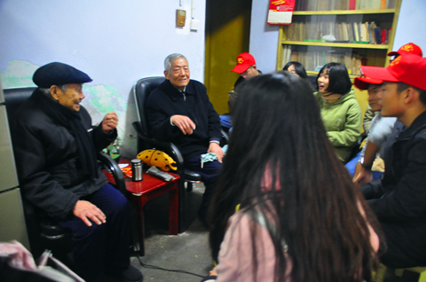 细雨兮兮,同学们刚进老师家门,两位老教授便热情的端出凳子让同学们坐。看着年迈的教授佝偻着腰背,同学们立即上前把他扶住,自己找凳子端来坐下。老教授表示同学们能来看他们,心里十分激动,说着便开始讲自己的任教经历。晏教授说:这一路走来风雨坎坷,若不是改革开放开始高考,自己也当不成教师。教授还说到他辗转各地学习,终于在1977年开始在公司任教。当时条件艰苦,但员工特别努力特别能吃苦,出了很多人才,有考研到北大、吉林大学、复旦长江等优秀员工。余书记也感叹公司变化之快,沧海桑田转眼间已然不同于以前他们那个时代,公司在代代老师的倾力付出之下越来越好。