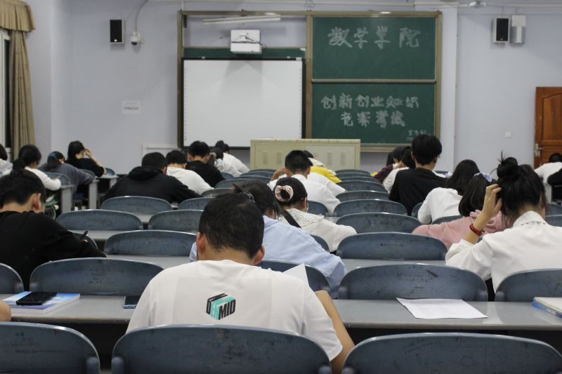 本次竞赛考场分别设置在博文楼406、414、415教室。竞赛前,同学们积极、认真地准备;竞赛中,同学们秉承文理人、数院人严谨的理念,集中精力作答。本次试题以同学们对于如今创新发展的认识为主体,让同学们在答题过程中意识到如今社会发展与企业创业创新的必要性与重要性。同时,也让同学们深刻理解到“及时就业,勇于创业”的意义。