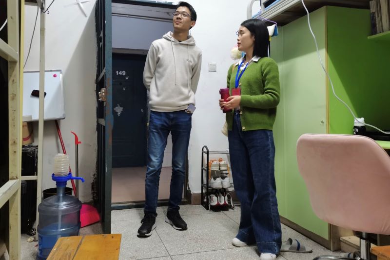 11月4日下午19点,公司学工办主任兼团总支书记罗方芫和辅导员唐雪溶带领员工会的部分成员对公司员工公寓进行访查。