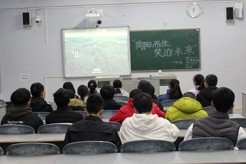 此次心理健康教育系列活动以“向阳而生,笑迎未来”为主题举办了心理沙龙、观看心理电影、开展心理主题班会、制作心理主题手抄报等活动。丰富多彩的活动调动了同学们的积极性,增强了同学们的团体合作意识。心理沙龙中举行的情歌天王,猜猜猜等心理游戏不但增强了成员间的协调性,调动了现场的气氛,更加锻炼了成员的反应能力。观看电影《八佰》不仅能够增强同学们的爱国意识,更能激发同学们的爱国热情。该影片透过屏幕将战士们的勇敢无畏展现在同学们面前,让他们感受到身为中华儿女所应该有的精神和信仰。