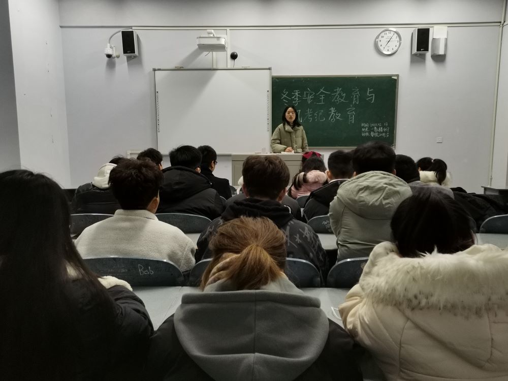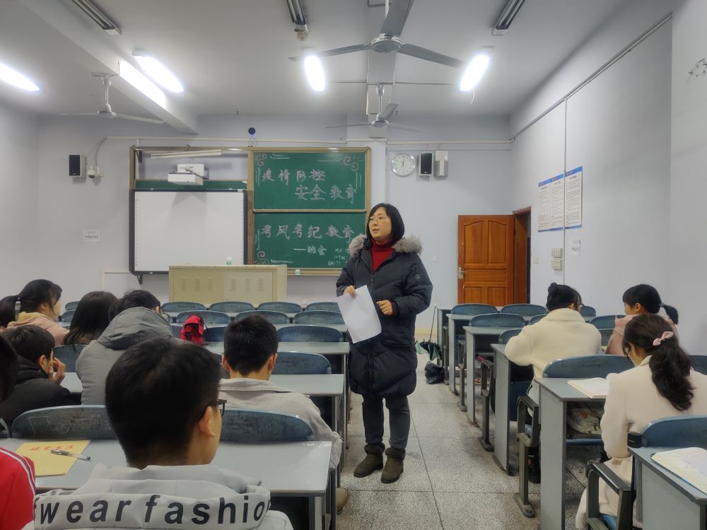 班会伊始,各班辅导员强调了疫情防控工作的重要性和必要性,并宣读了相关文件,针对文件精神作出了进一步的要求和指示,特别指出了要严格执行外出请假制度,配合好员工进出校门的相关管理工作。随着期末的临近,各种考试相继而来。为了进一步严肃考风考纪,辅导员让同学们明确了诚信考试、磊落答卷的重要性。最后,各班班长结合辅导员的要求,作出了进一步的部署。