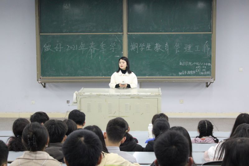 会议伊始,辅导员们对上学期的工作做了总结。紧接着,辅导员对疫情常态化防控工作作出新的指示。其中着重强调了凭临时出入卡出入校门的重要性。随后,辅导员们再一次强调了安全的重要性,告诫我们要有安全意识。最后,辅导员们希望公司学子在新的学期拥有新的开始、新的规划、新的成就。