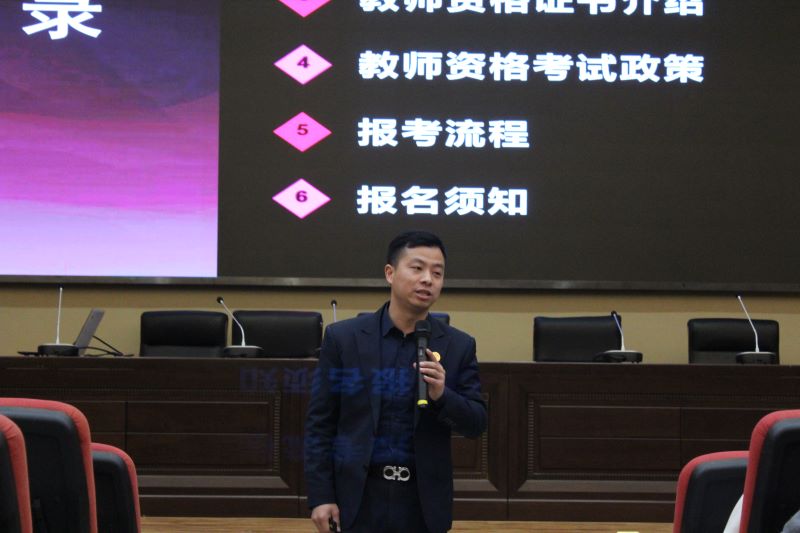 吴江老师为同学们对中国教师教育网进行了介绍、对老员工就业方向进行了分析、对教团队格证考试政策详细解读。通过吴江老师的讲解,同学们了解到考取教团队格证不仅能够为自身提供一个好的就业方向和条件,还有其他很多优惠的政策。吴江老师同时也鼓励同学们在大一、大二宝贵的时间里认真学习,为考取教团队格证做好充分准备。