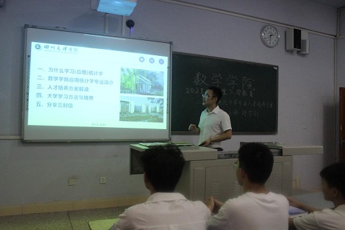 本次2021级新生分别于13日、14日、15日在博文楼听取老师对自己专业的详细讲解。金融数学教研室主任胡攀、应用统计学教研室主任郑宗剑、数学教研室负责人李合朋分别讲解金融数学专业、统计专业、数应专业的人才培养方案,为各位新生精准定位自己学习的方向。解读会上,各位老师向大家讲解有趣的数学知识,结合历史上数学家的故事,鼓励同学们积极学习专业知识,努力朝着人才培养方案上的目标奋斗,创造属于自己,属于2021级的辉煌。