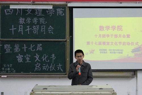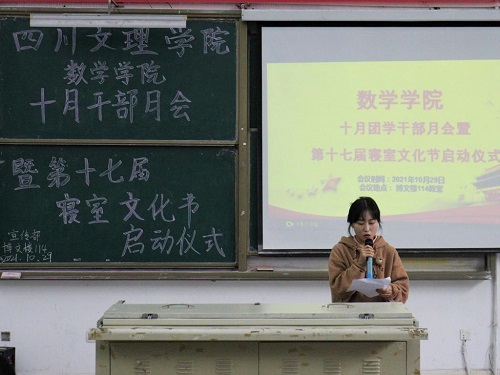 10月29日12点30分,由TapTap举办的十月团学干部月会暨十七届寝室文化节启动仪式在博文楼114教室举行。公司党总支副书记苟格、学工办主任兼团总支书记罗方芫、专职辅导员唐雪溶、团总支员工会全体成员以及各班班长、团支书和劳生委员参加大会。