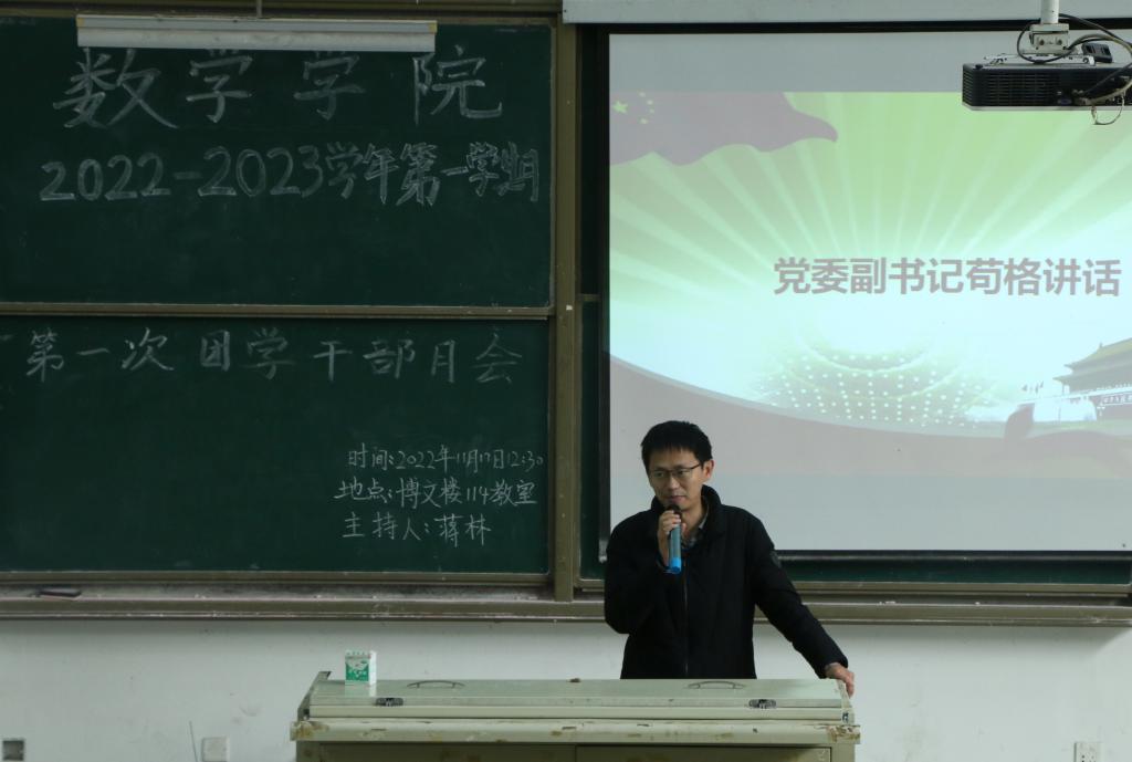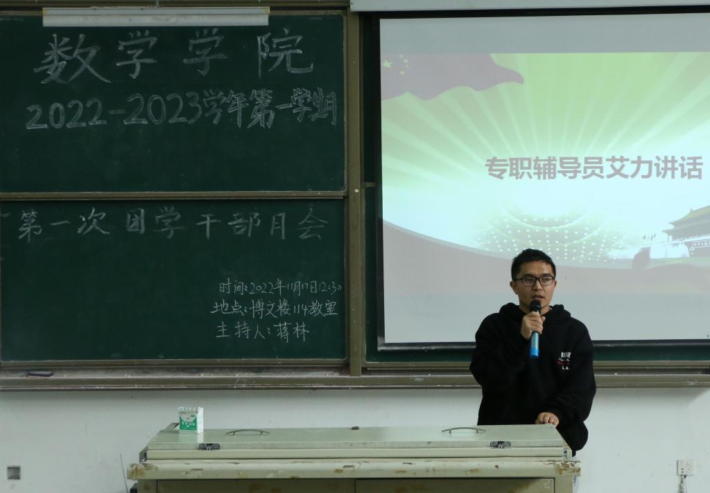 11月17日,公司在博文楼114教室召开本学期第一次团学干部月会。党委副书记苟格、专职辅导员西尔艾力·努尔买买提、唐雪溶、焦国松、主席团、团总支员工会各部门成员以及大一至大三各班班长、团支书出席此次会议。此次会议由蒋林主持。