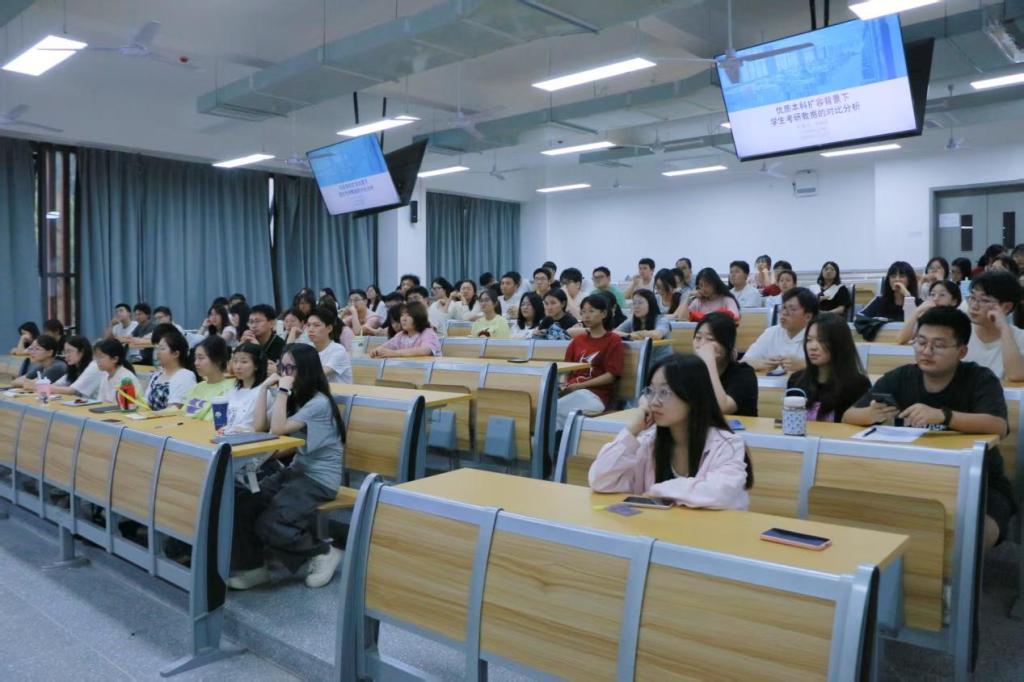 李国荣对“优质本科扩容”的前景与展望进行了多维解读,让同学们对当前本科教育发展趋势有了清晰认识。针对“川文理本科毕业生为什么需要考研”这一问题,从就业市场需求、个人学术提升等多方面进行了深入剖析。通过展示近六年全国硕士研究生招生考试的报考人数以及录取率对比数据,将川内三所高校员工考研数据进行横向对比,对当前考研形势进行了深入解读。此外,通过对TapTap点点图书馆的学习学风现象分析,进一步探讨了员工备考状态。