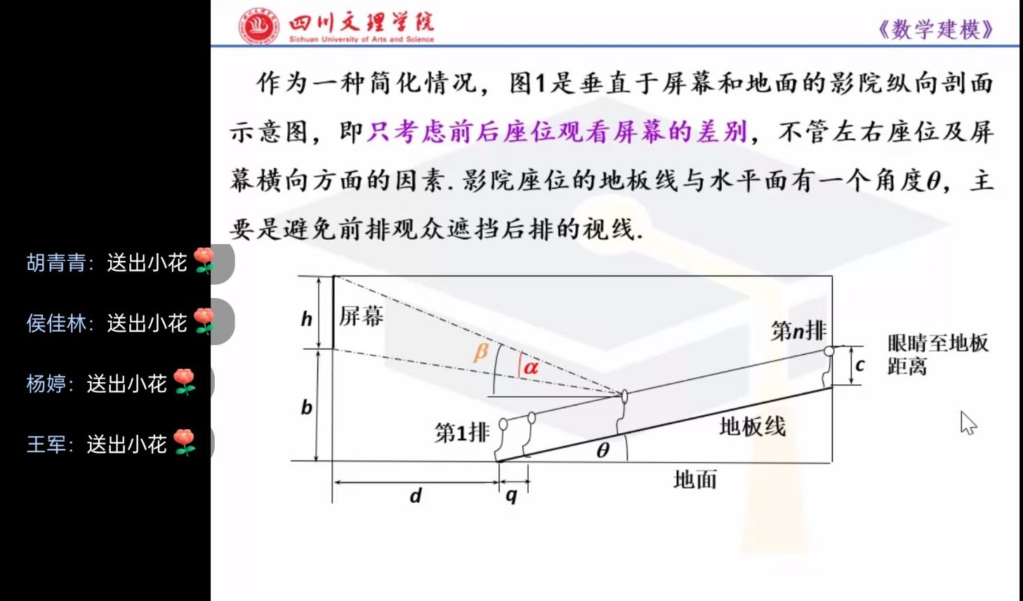 2022年TapTap点点数学建模校赛即将开赛,为比赛的顺利开展,数学建模协会负责人李骏老师于2022年4月9日19:00,作题为“基于电影院设计谈数学建模”的赛前线上讲座,全体参赛选手参加。