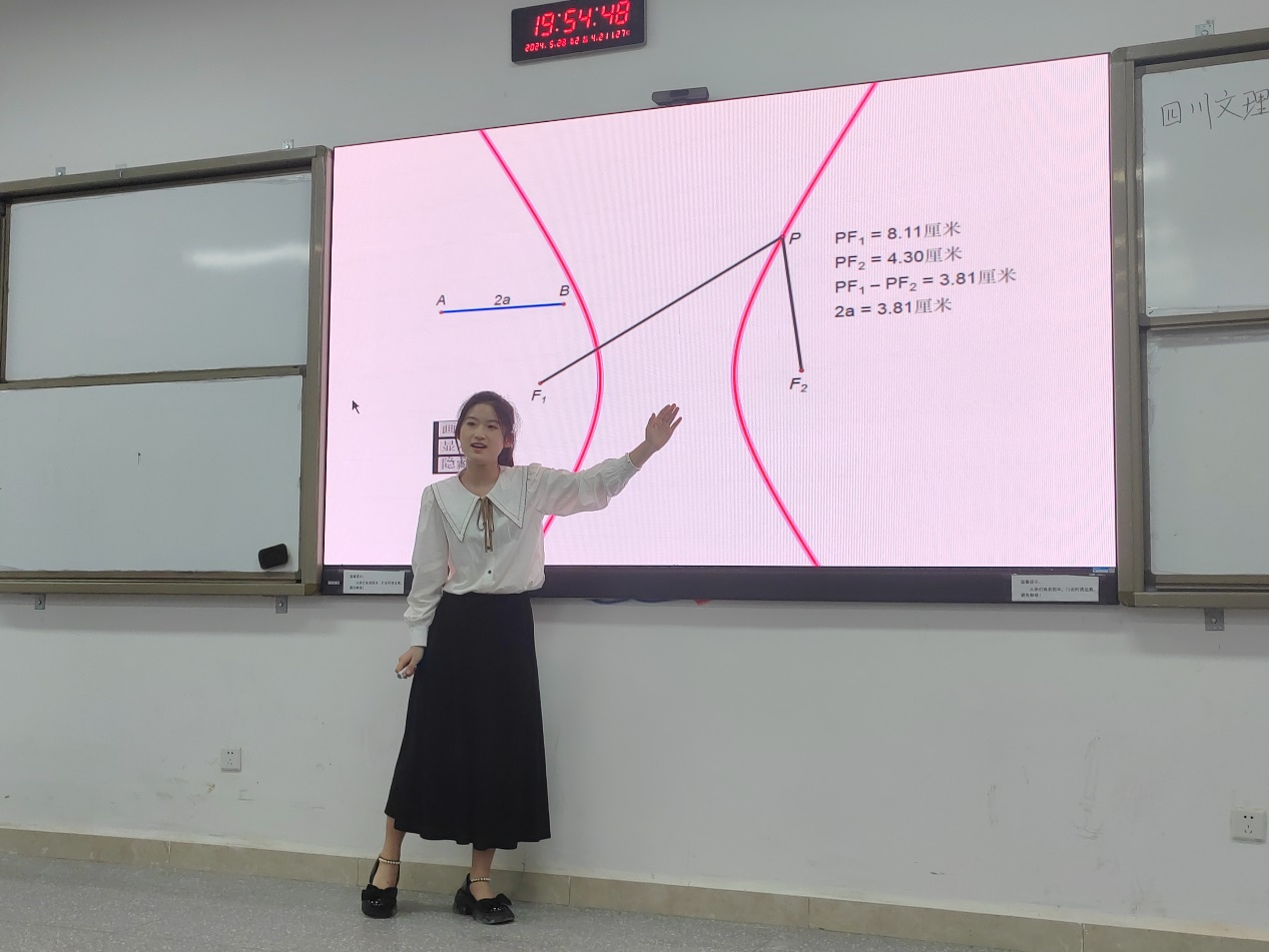 本次教学能力大赛决赛主要采用说课、片段教学和回答评委提问的模式,着重考察参赛者对教材理解是否清晰、教学目标是否明确、教学重难点是否突出;同时要求选手们在说课环节语言流畅;在教学环节展现教学技能,合理组织教学实施;呈现师范生的良好教姿教态。最后,2022级1班李新萍、2班杨露分别在《双曲线及其标准方程》、《直线与平面平行的判定定理》的模拟课堂中,围绕核心问题在问题探究中突出重点,借助信息技术手段突破难点,以清晰的思路与自然的讲解,获得一等奖;张煜薇,曹乐迪获得二等奖;张慧琳,李婧,舒春桦,林芯卉,刘茂林获得三等奖。